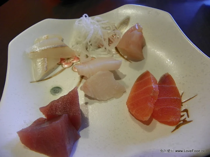 首先是他的生魚片、握壽司等日式料理方面,會有專人現切的開放式吧檯在料理,不過畢竟是以蝦料理為主的餐廳,他的生魚片不是很合我意,解凍可能太急,生魚片還有微微的冰,而且切得不大塊就是了,而手捲則還不錯吃,都還蠻新鮮的。