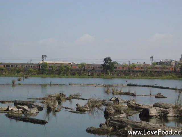 我走在池畔,看見烏龜爬上浮木,