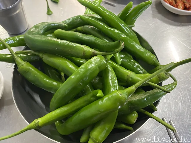 此外,這裡的攤販還會提供一盤青陽辣椒,這種辣椒外表看似無害,實則有些帶勁,但如果挑選較大根的品種,反而能嚐到清脆鮮甜的滋味。搭配著麵條一起入口,不僅能解膩,還能為整碗湯麵增添層次感。