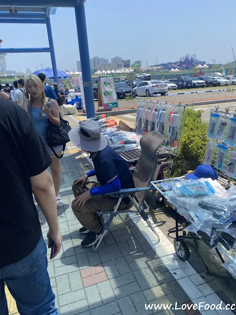 7月29日這天,釜山的天氣簡直是烈日當空,光是站在會場門口排隊就已經汗流浹背。但進場後,看到滿場的人潮、舞台的燈光、DJ放送的震撼音樂,瞬間就燃起了興奮感!一進場就被工作人員發了一條隊伍毛巾,我選的是綠隊,但老實說,等水戰開始後,根本沒人在乎你是哪隊的,大家看到人就是狂射水!